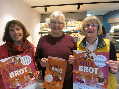 In der Zeit von Aschermittwoch bis Karsamstag bieten Bäcker sogenannte „Solibrote“ zum Kauf an. Das Besondere daran: Dieses Brot wird mit einem Benefiz-Anteil von 50 Cent verkauft. Der Spendenanteil geht zu 100% von der Bäckerei über den KDFB an Misereor und kommt verschiedenen Projekten in Afrika, Asien und Lateinamerika zugute.